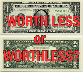 The current value of a US dollar is around seven cents – paper and electronic cash is a con job – real money is gold or silver bullion – the paper stuff is a collective fantasy that only works so long as the masses don’t find out what it’s real value is.